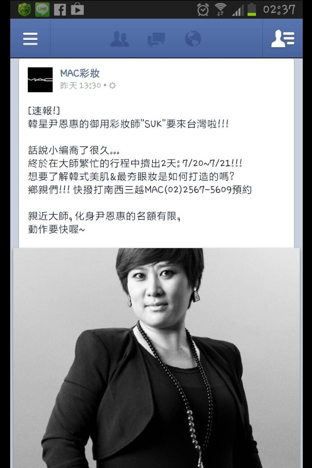 (((((((((韓星尹恩惠的御用彩妝師"SUK"要來台灣的消息!!))))))))))